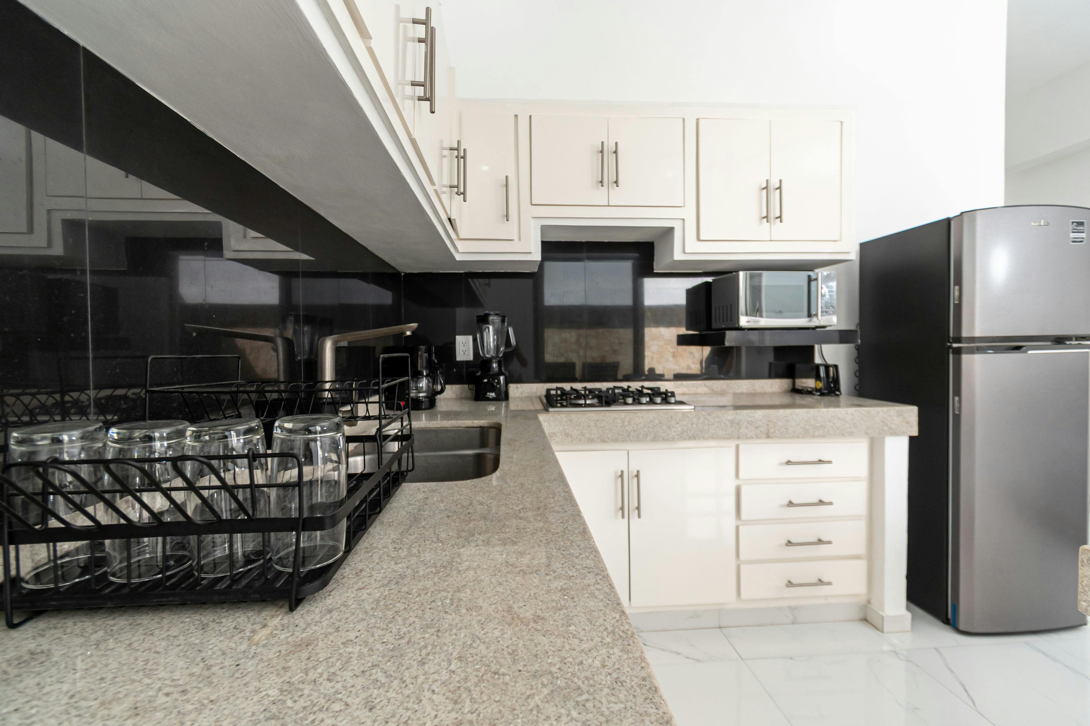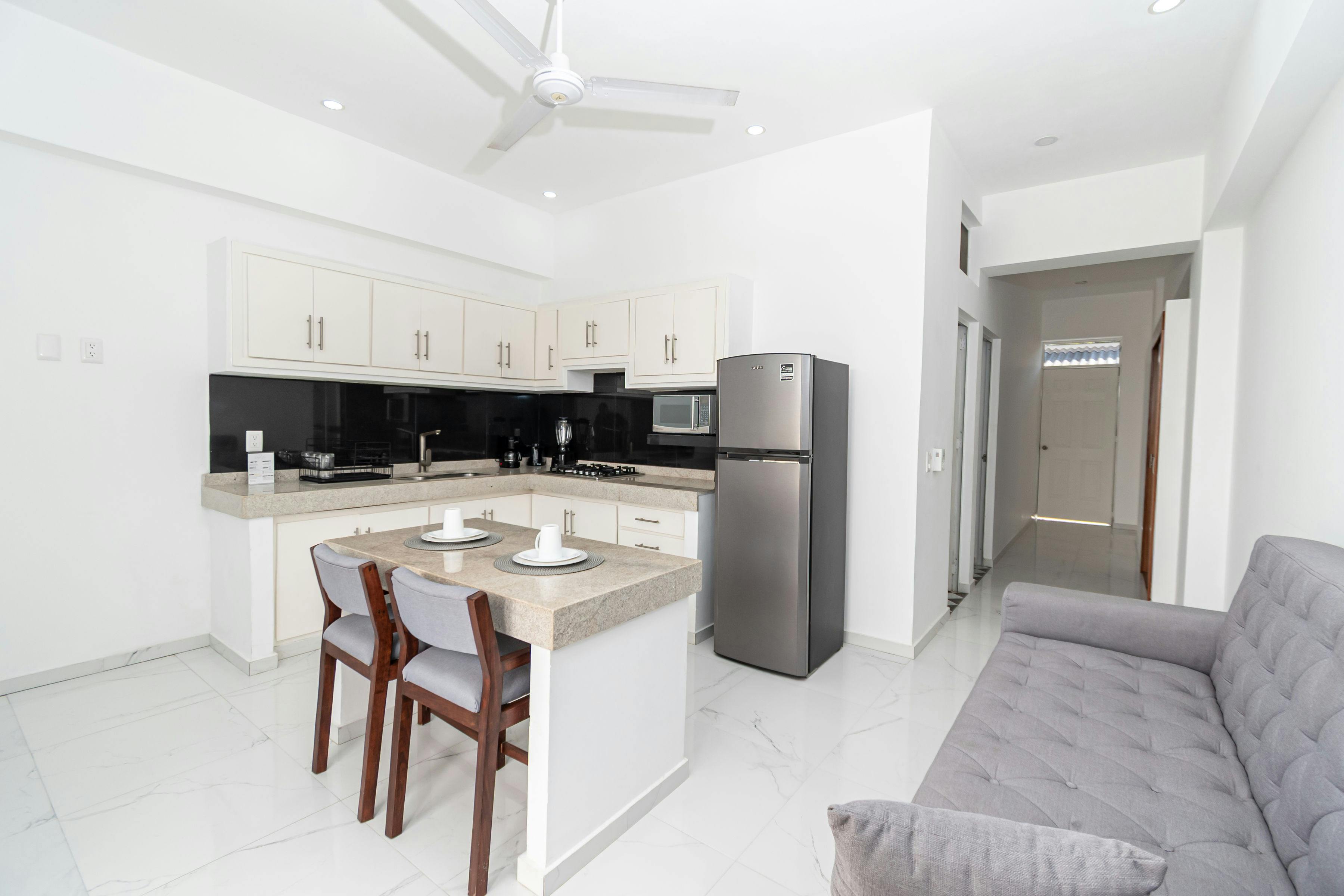 This suite has 1 bedroom, 1 bathroom with shower, fully equipped kitchen and terrace. The kitchen is equipped with a refrigerator, kitchenware and a microwave. The air-conditioned suite features a flat-screen TV, coffee and tea maker, dining area, closet and pool views. The unit is furnished with 1 bed.